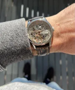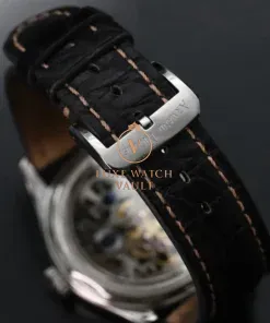 The evidence of this history of finishing can be seen in this LS8 Skeleton. Sitting inside the beautifully proportioned 42mm steel case lies a skeletonized manual wind movement known as the AN 0711S, which is created by modifying an original UT 600 calibre base dating back to 1957. It’s a stunning movement with a high level of decoration.