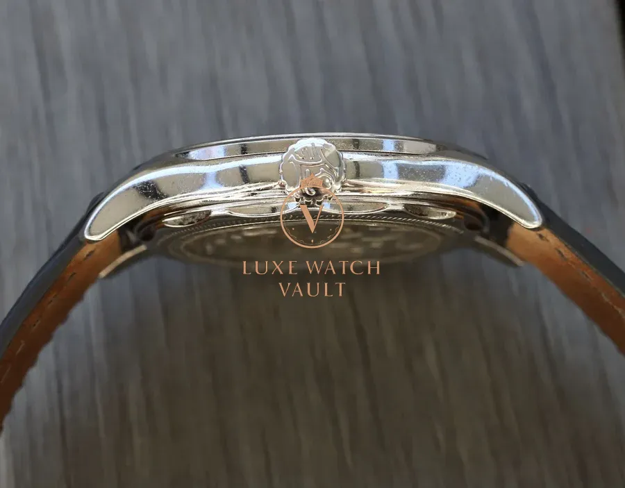 This particular piece presents in TZ ‘Good’ condition. Has been worn regularly, and shows scuffs and scratches commensurate with that use. Case sides show numerous pin dents. No large dings/nicks etc. AR coating shows some small marks. Please see images for full condition details.
