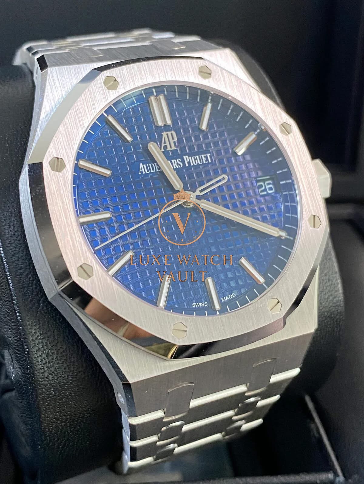 Audemars Piguet Japan Edition Royal Oak White Gold – Blue Dial – 15503BC *FULL SET* $74,000🚢Audemars Piguet Royal Oak Japan Edition, 41mm white gold, blue Grande Tapisserie dial, limited to 300 pieces. Pre-owned, mint condition, with original box, papers, and 1-year warranty.