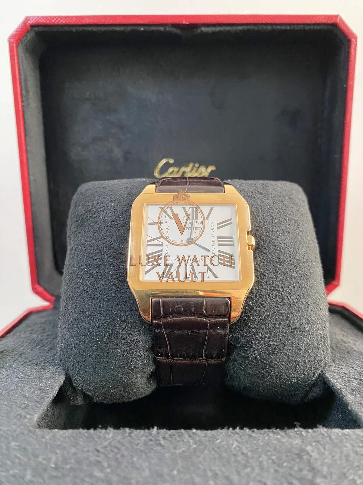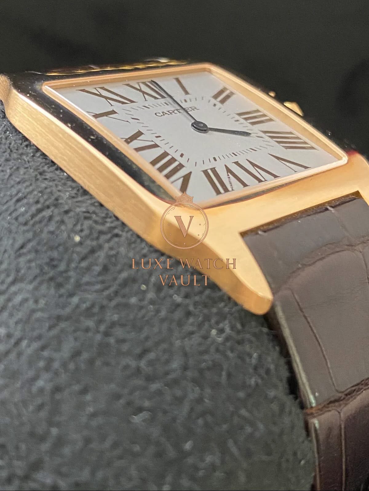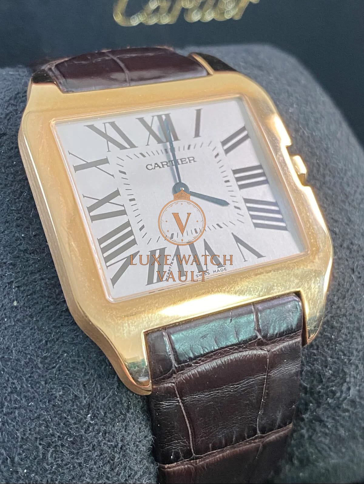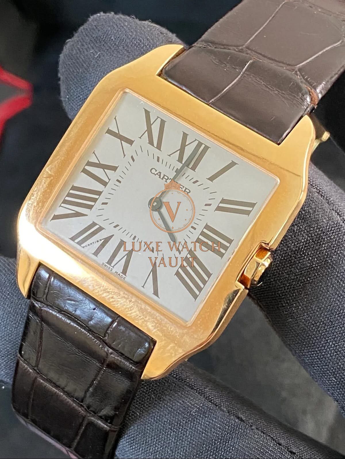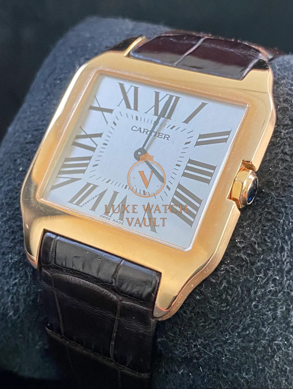 Cartier Santos-Dumont Large Pink Gold Case – Alligator Strap – W2006951 $6,000🚢Cartier Santos Dumont W2006951, 44.6×34.6mm, rose gold case, silver dial, manual winding, 36h power reserve, pre-owned, with box and 1-year warranty.