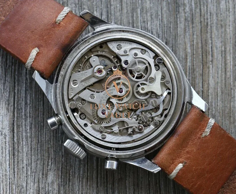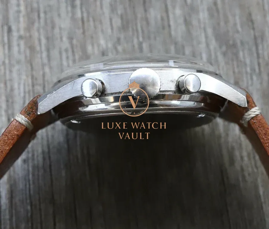By far their most famous line is the MultChron, most famously worn by the F1 driver Jim Clark in later EP40-spec. This particular example is one of the Valjoux 72 powered pieces, and is a stunning example from a time that manually-wound chronos ruled the horological world.