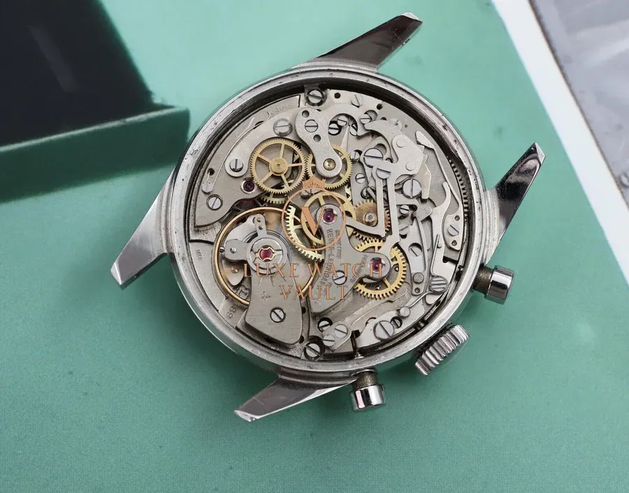 Movement is a manually wound Landeron Caliber 189. Apparently serviced within the last couple of years by the previous retailer. Chrono starts, stops and resets as it should. Winds smoothly and keeps COSC time.