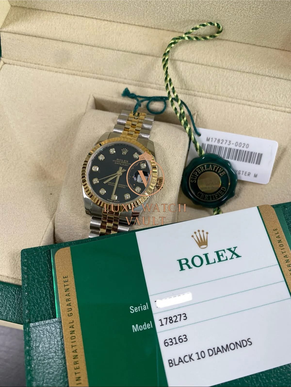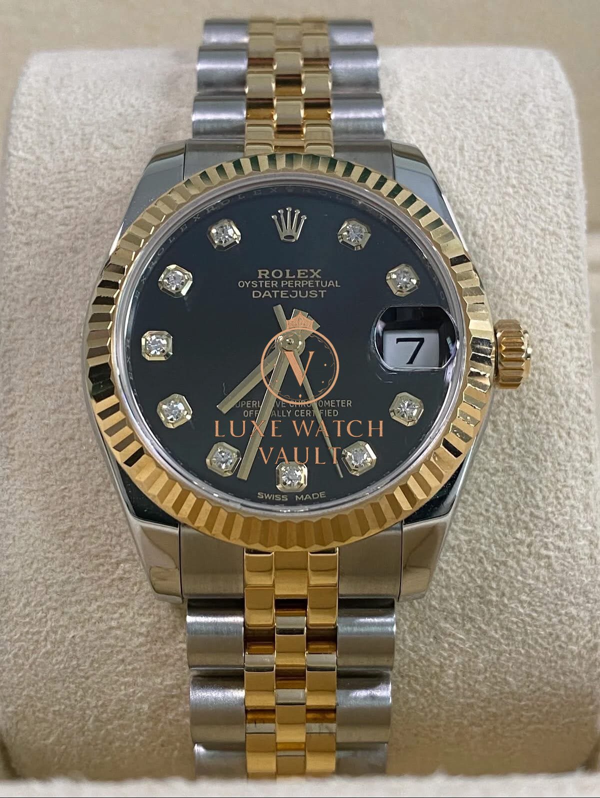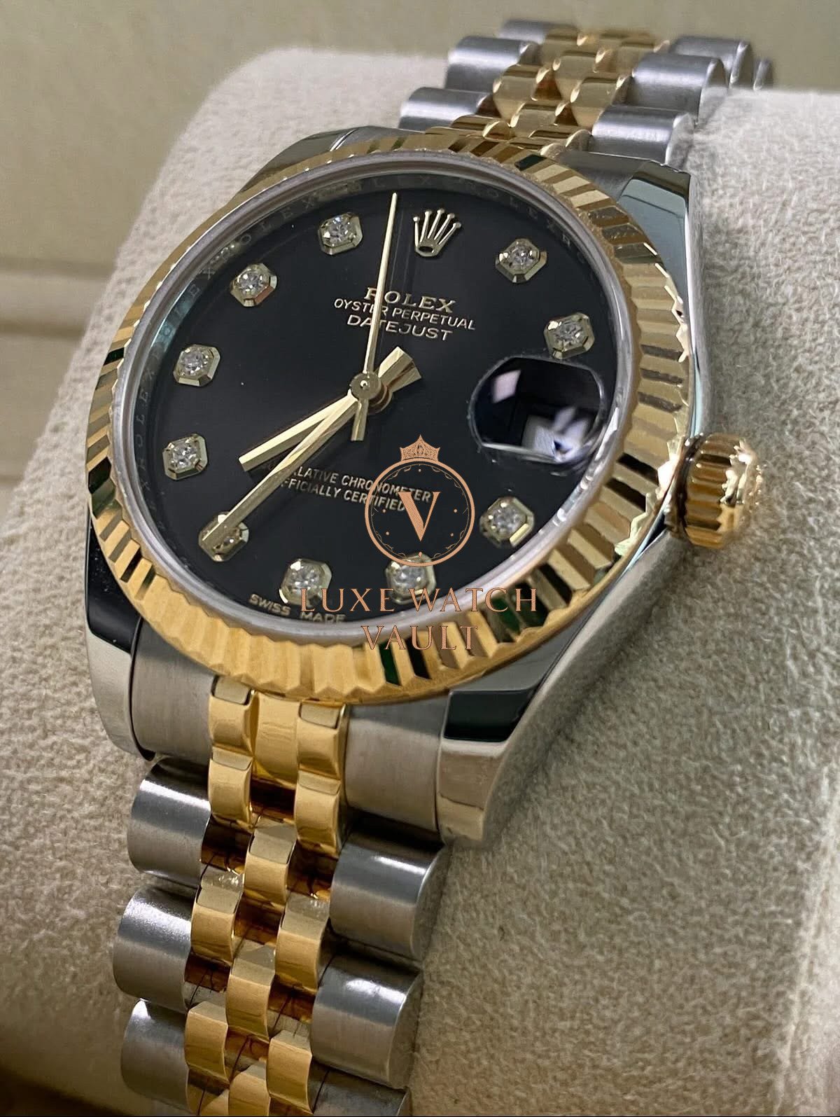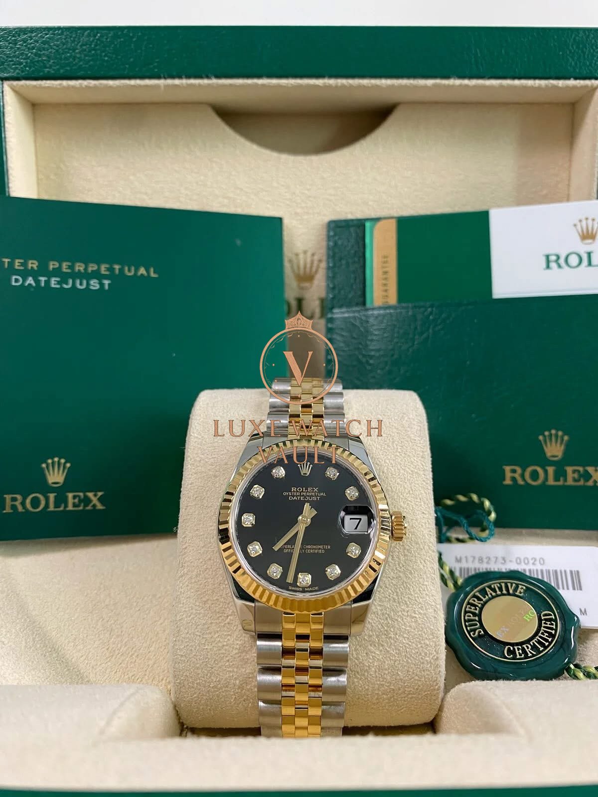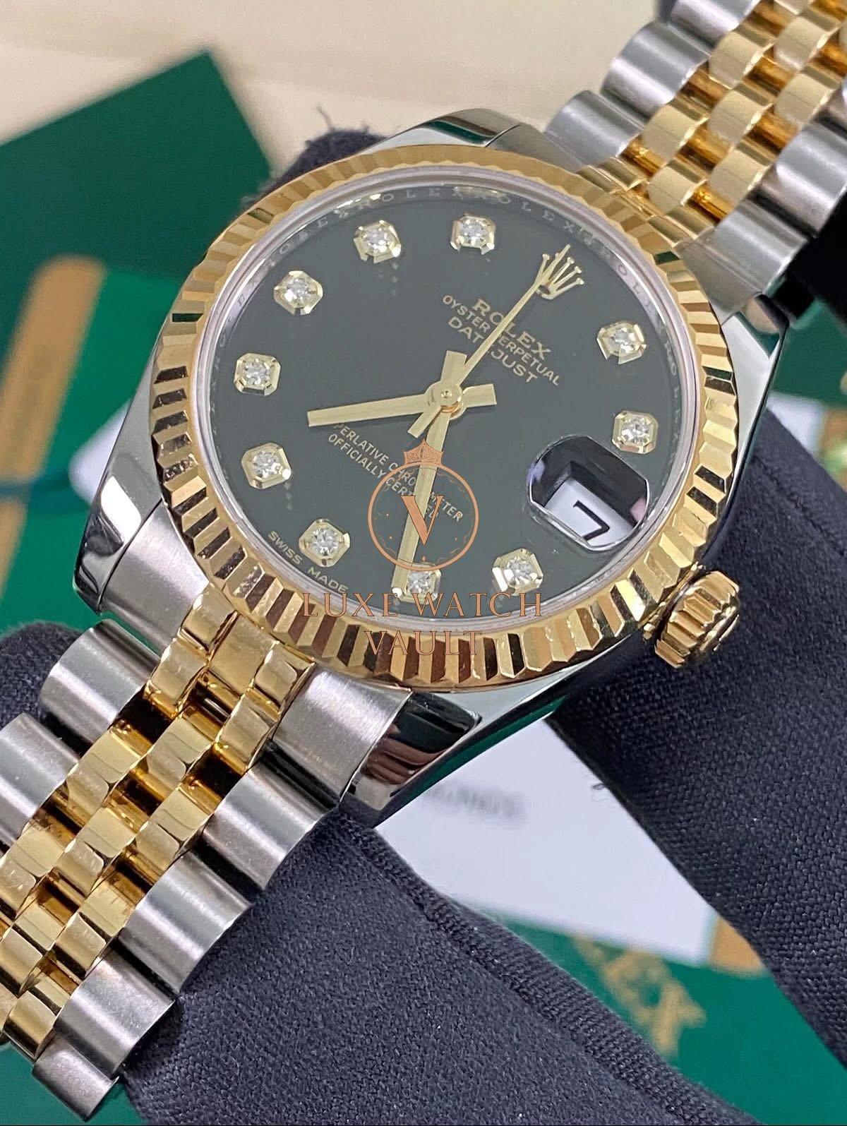 Rolex Lady-Datejust – 2018 – Black Diamond Dial – Jubilee Bracelet – 178273 *FULL SET* $12,500🚢Rolex Datejust 31, 31mm, gold/steel, 2018, pre-owned, with original box and papers, 1-year warranty.
