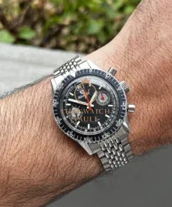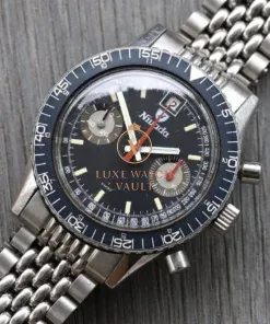 Produced between 1963 and 1978, the Chronomaster Aviator Sea Diver range of watches from Nivada were a range of super-cool dive Chronos from the peak period of tool watches. They came in a few different variations, with the most commonly seen being the no-date with chrono registers at 3 and 9, and then another with a date window at 12, known as the Chronoking, which is the watch we have here today.