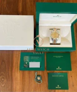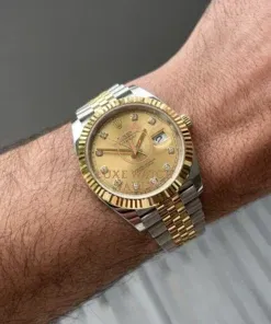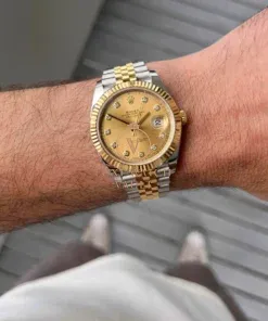 They don’t come much more iconic than a two tone Datejust. The 126333 is the current reference, with it’s 41mm case, fluted yellow gold bezel, champagne dial with diamond markers, and the magnificent two tone Jubilee bracelet. Rolex nails the two tone balance on it’s Jubilee watches, and if you’ve always loved that classic 80’s Datejust look but felt the 36mm was too small in it’s classic guise, then this may be the reference for you.
