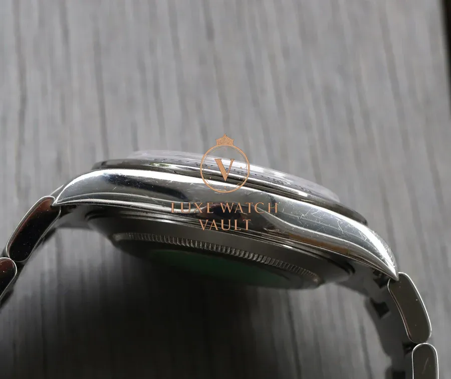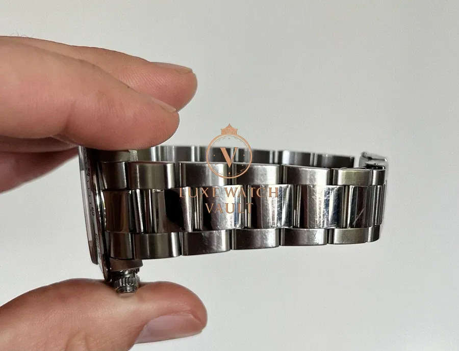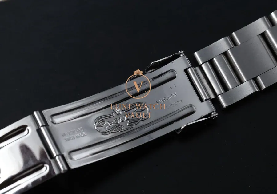 Bracelet is a 78390A with solid endlinks. Correct X (199) date code on clasp. Shows scuffs and scratches throughout. Contains 10 links, with one being from a later reference newer without a slotted section, which we added in as the bracelet was a little short without it. Will now fit up to a 7.5in wrist.