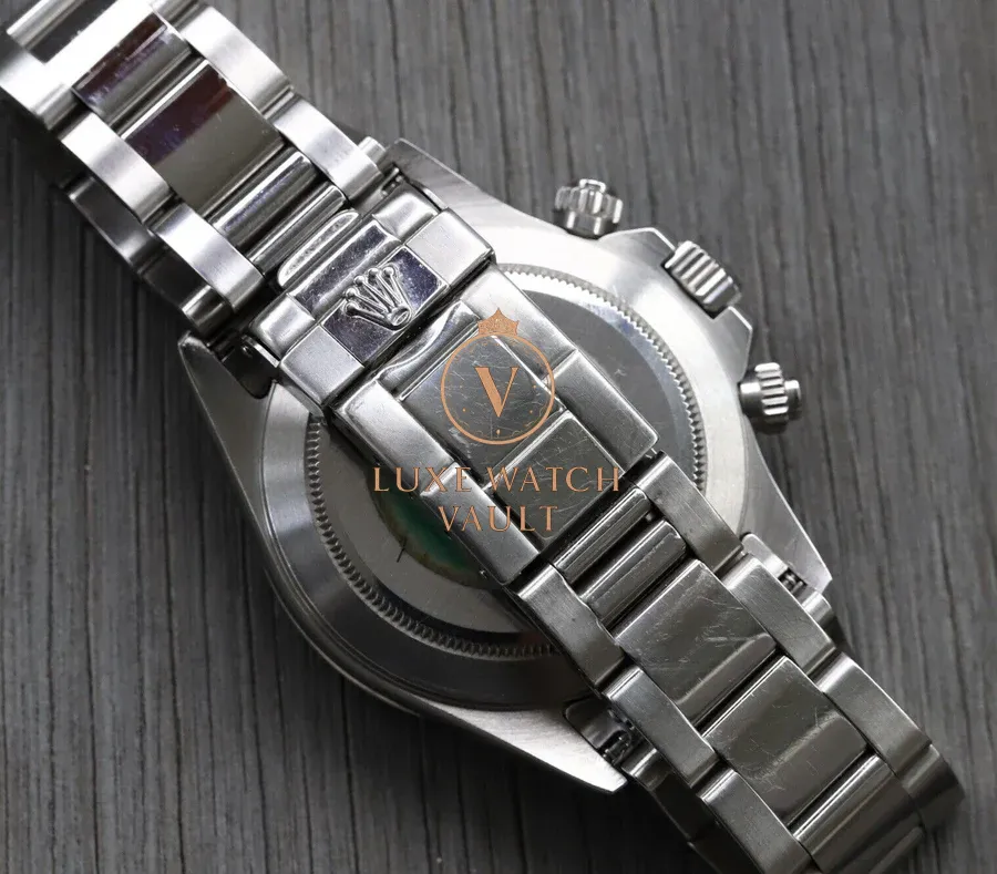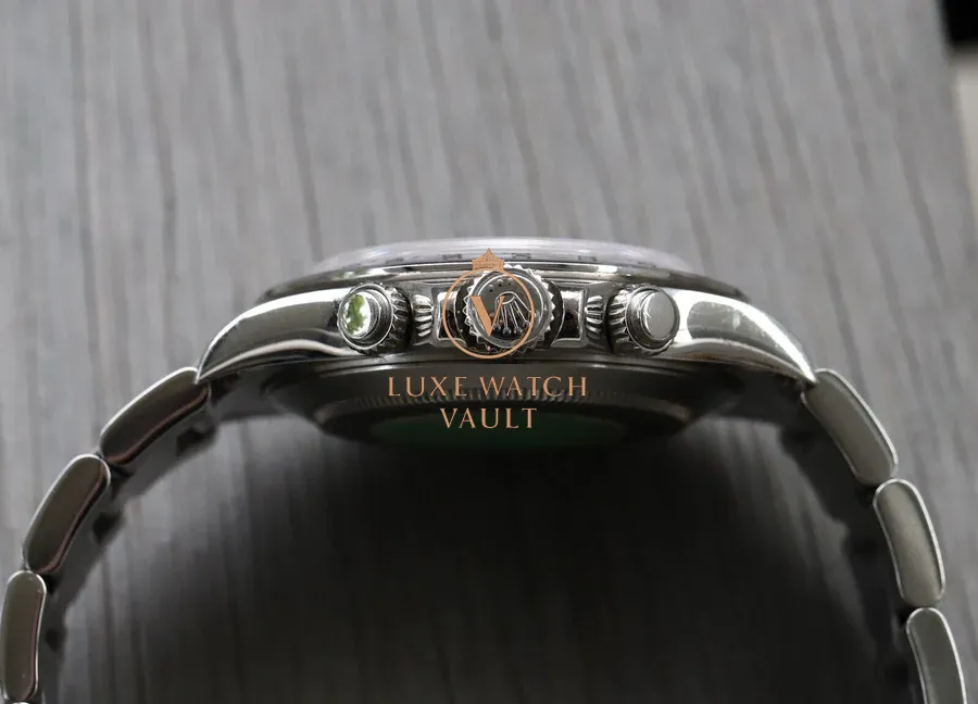 ‘Zenith’ Daytona’s have become highly sought after over the past decade, and are widely considered to be the bridging reference between vintage and modern Daytona. For us, they hit the absolute Daytona sweet spot, with modern usability thanks to the Zenith-derived calibre 4030 with its automatic winding, while still retaining brushed lugs, and for the last couple of years of its production such as this piece, a solid endlink (SEL) bracelet and Luminova. It’s modern build quality meets vintage aesthetic.
