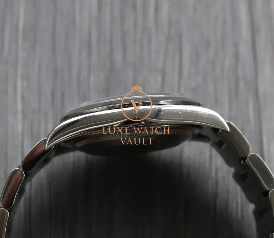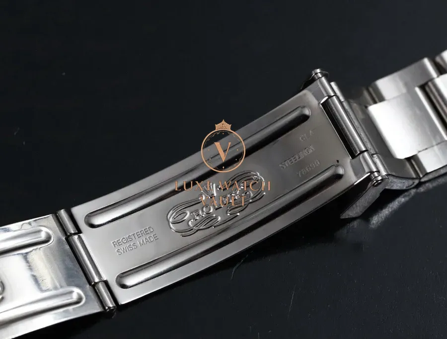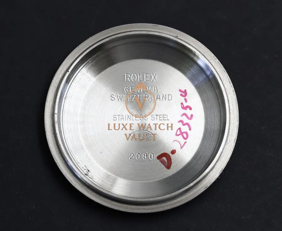 Bracelet is a 78690 with solid endlinks, and 10 links. Clasp code is CL4, indicating it’s also from 2004. Minimal stretch for its age, and shows minor desk diving marks. Caseback stamped 2080.
