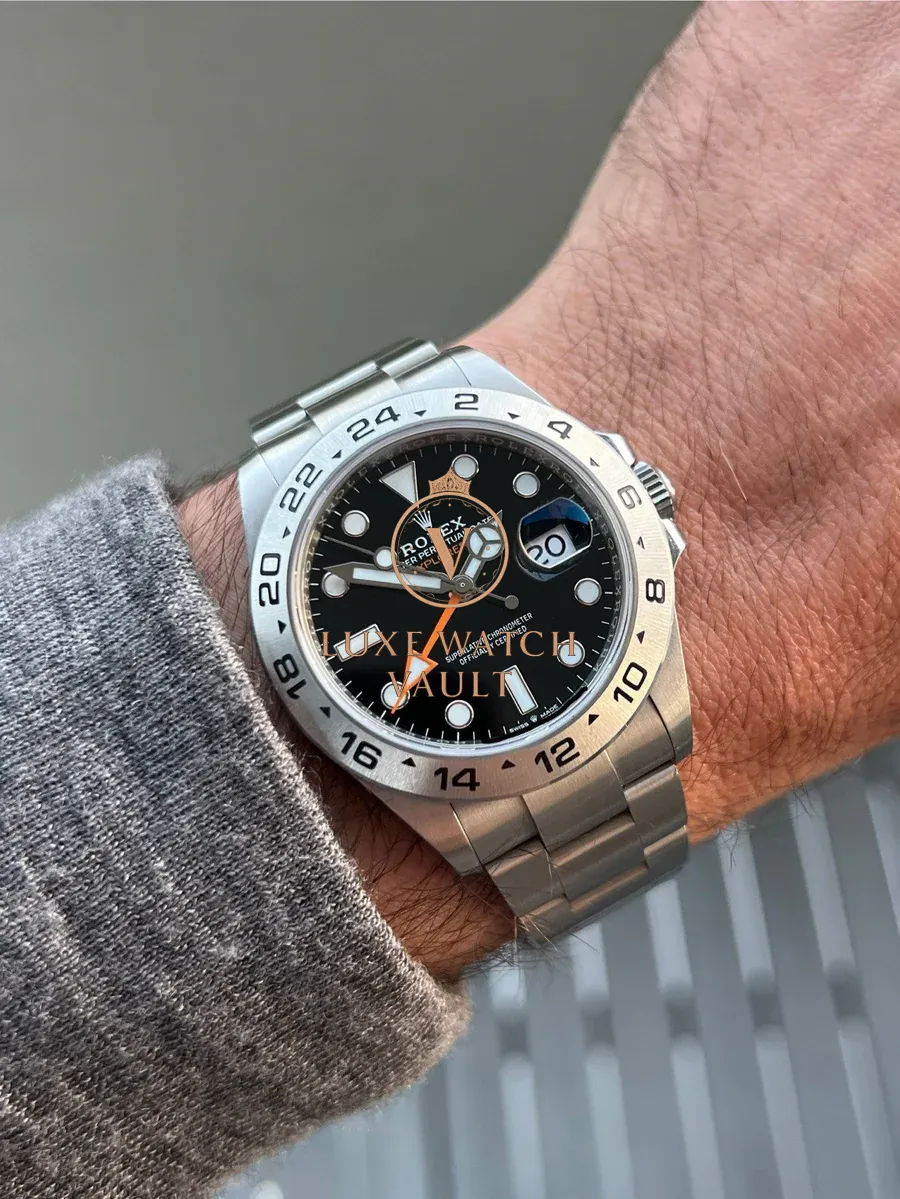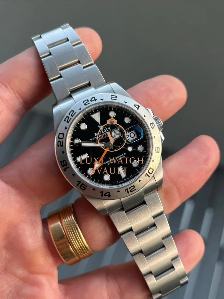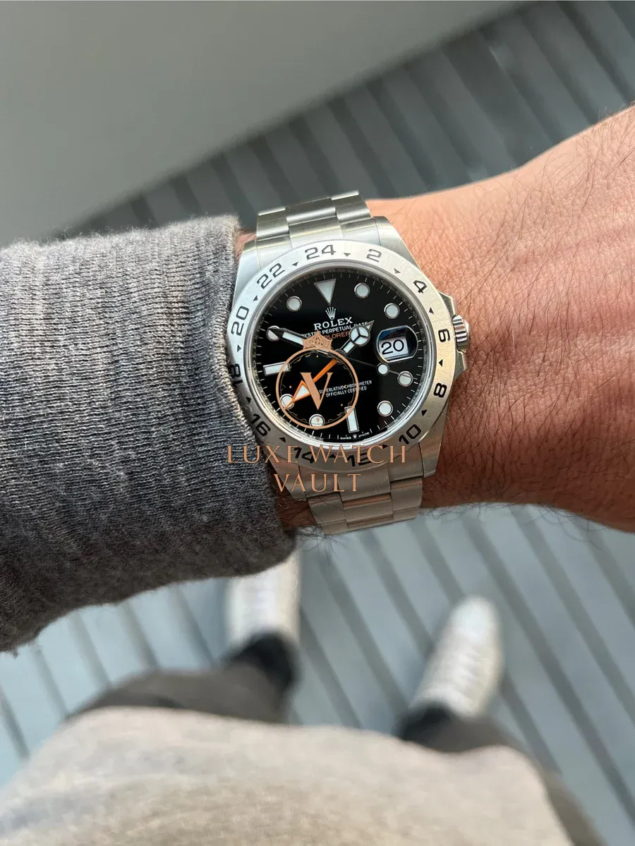 A modern update to the long enduring 16570, the Explorer II 226570 is quite a different piece aesthetically to its forebears. Now featuring a 42mm steel case with maxi dial, it’s a proper tool watch with GMT capability for those that perhaps find the 40/41mm range a touch small for their tastes. The Explorer II also one of the more under-the-radar sports pieces, and always has been, which definitely has its own appeal for those wanting to enjoy their watch without the attention some of the other more recent models attract.