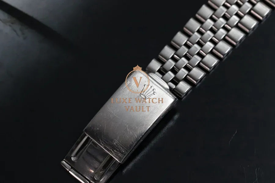 Comes equipped on a folded link 6251H Jubilee, with 22 links and dated 1971 which is correct for this era being about 2 years younger than the watch. Shows average stretch for its age. Clasp coronet is very pronounced. Will fit up to a 7.6in wrist.