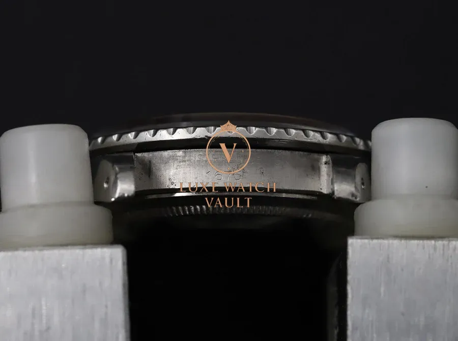 The case is nicely preserved. Has been polished in the past, but retains thick lugs. Shows marks throughout.