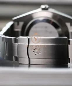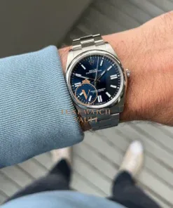 Within this new 41mm Oystersteel case resides a stunning bright blue sunray dial with blue Chromalight lume within the white gold applied markers, topped with white gold hands and powered by the superb Calibre 3230 with 70 hours of power reserve and Rolex’s famed accuracy, toughness and durability.