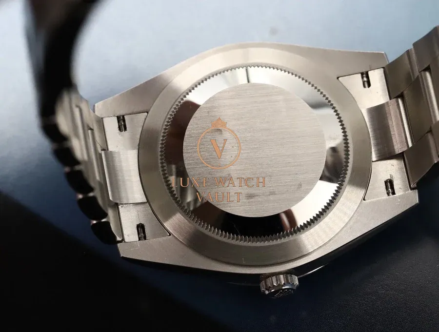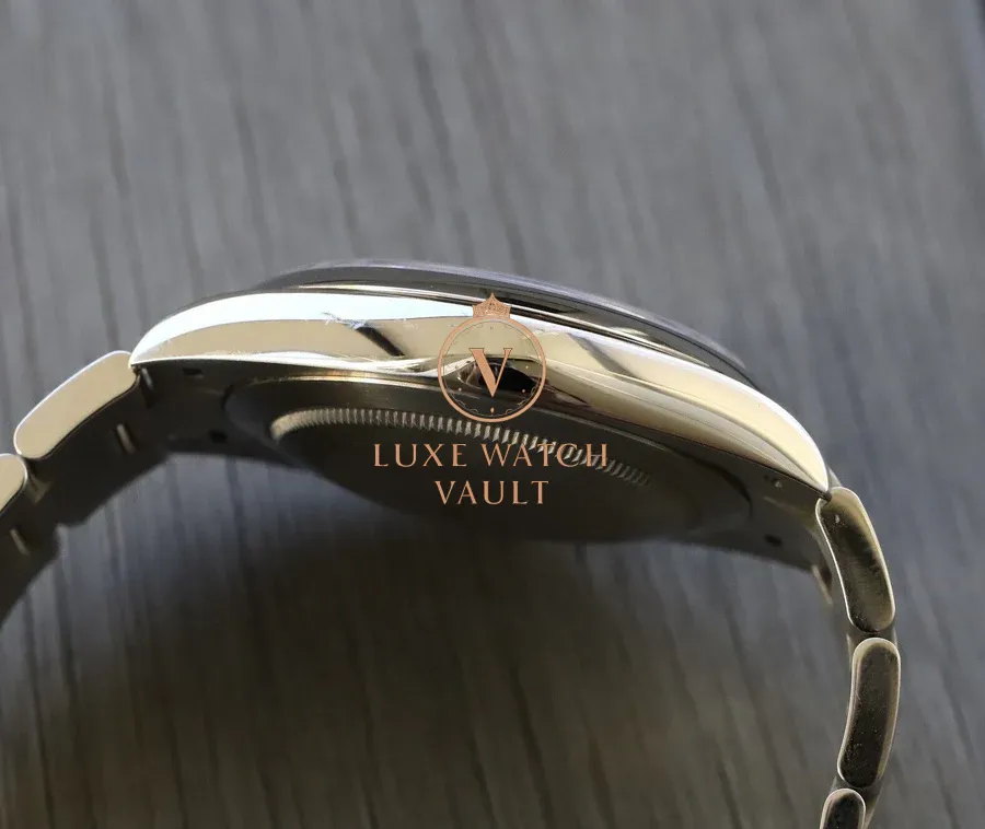 This particular piece was first delivered in mid-2023, and presents in TZ Near Mint condition. Case sides show some minor rub marks and light hairlines, and there’s some rub marks on the case back from being rested on its bracelet, but that’s about it. Please see images for full condition details.