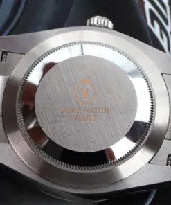 Paraphernalia: Outer box, inner box, card holder, instruction booklet, guarantee manual, green hang tag, warranty card dated mid-2023, spare link to complete the bracelet and Watch Vault cleaning cloth