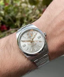 Within this new 41mm Oystersteel case resides a stunning silver sunray dial with blue Chromalight lume within the gold applied markers, topped with rose gold hands and powered by the superb Calibre 3230 with 70 hours of power reserve and Rolex’s famed accuracy, toughness and durability.