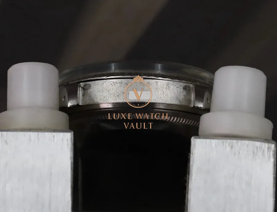 Case has been polished in it’s life, but retains even lugs, with numbers clearly visible between them. Bezel shows quite a bit of polish. Case back is stamped 68, so appears original. See images for full condition details.