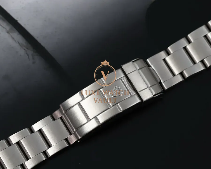 Bracelet is a 93160A with solid endlinks, and an EO stamped clasp which is correctly dated for an M serial. Has 10 links and will fit roughly a 7.5in wrist. Shows minimal stretch, and only minor marks.