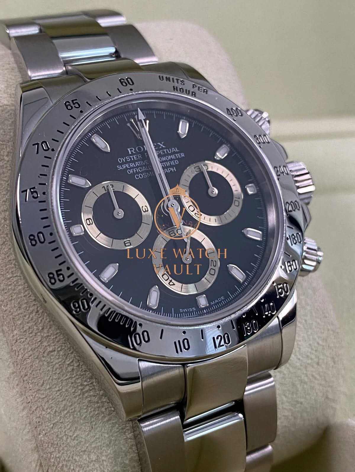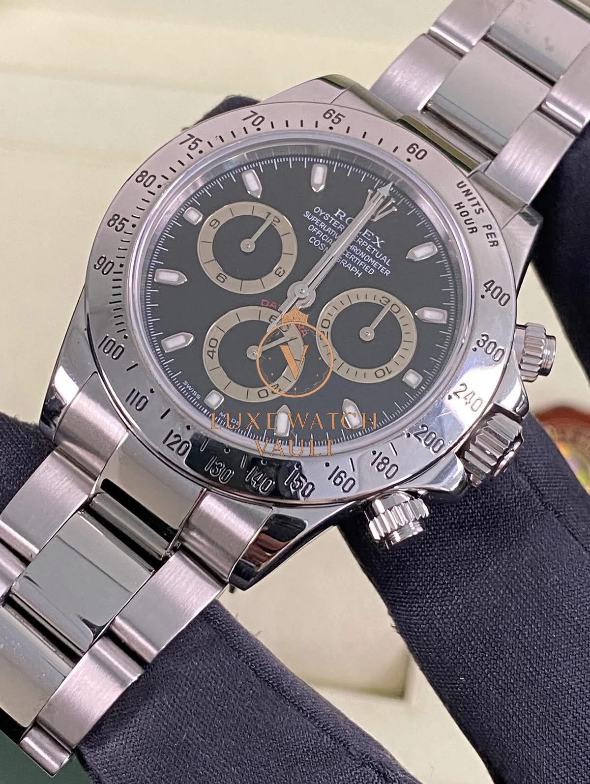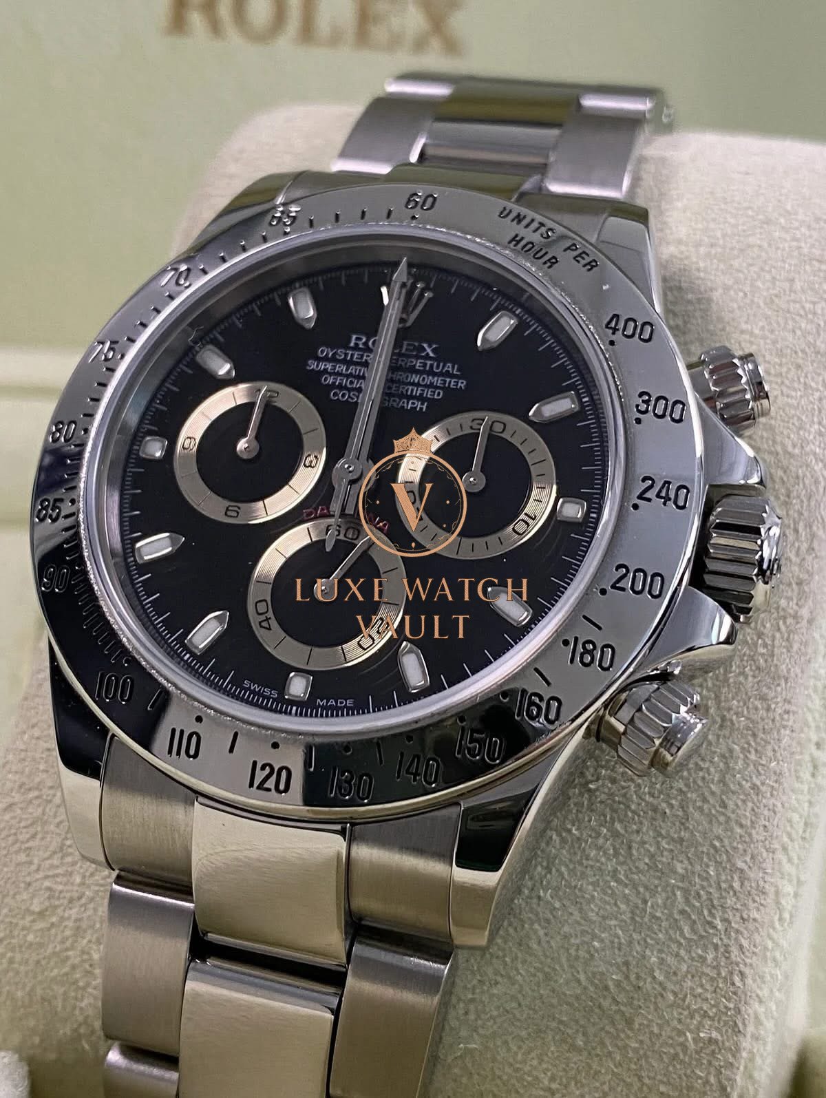 Rolex Steel Cosmograph Daytona – D serial – Black Dial – 116520 $16,500🚢Rolex Cosmograph Daytona, Ref. 116520, 40mm steel case, black dial, steel Oyster bracelet, automatic movement, 72h power reserve, with original box and 1-year warranty.