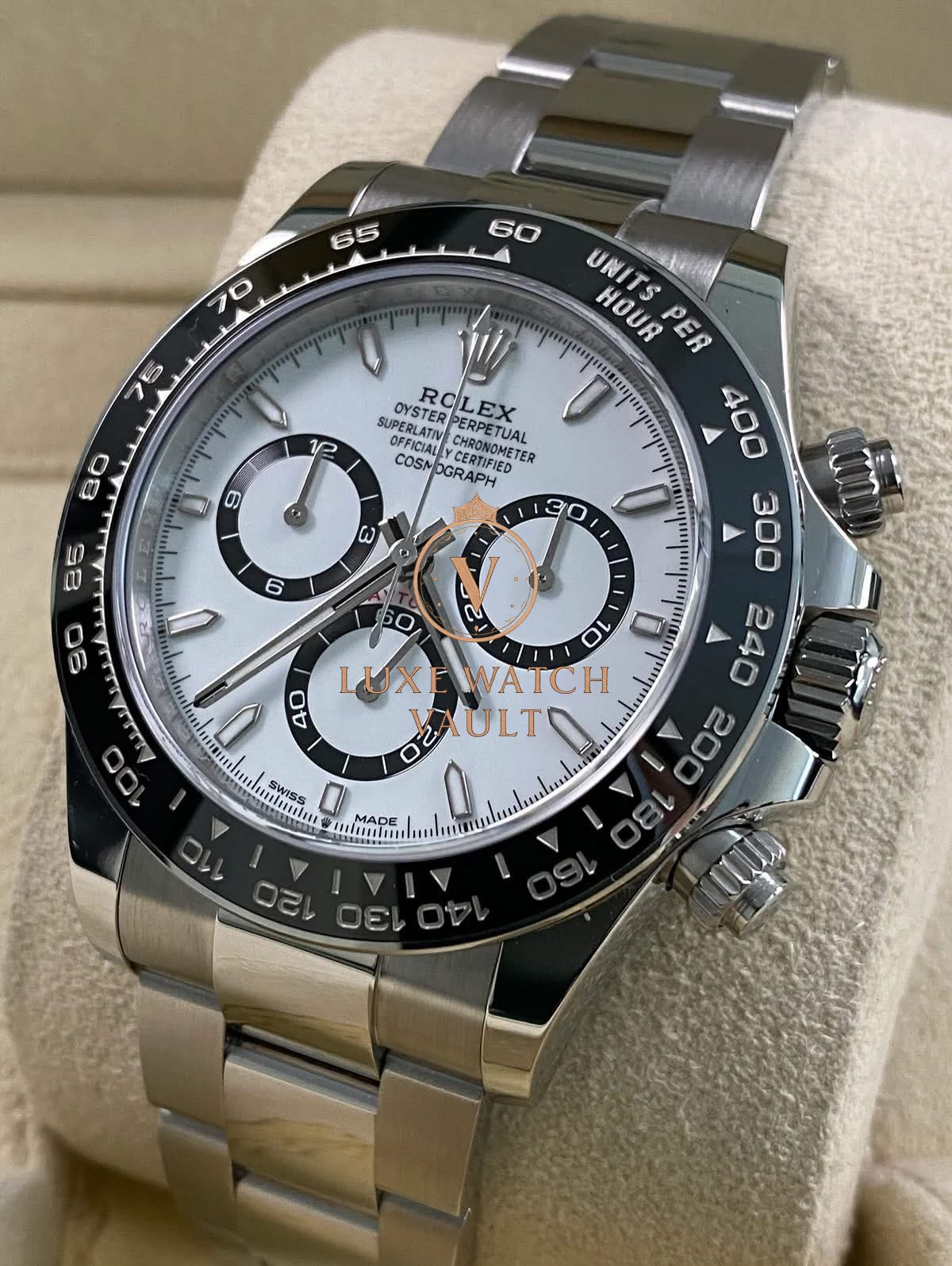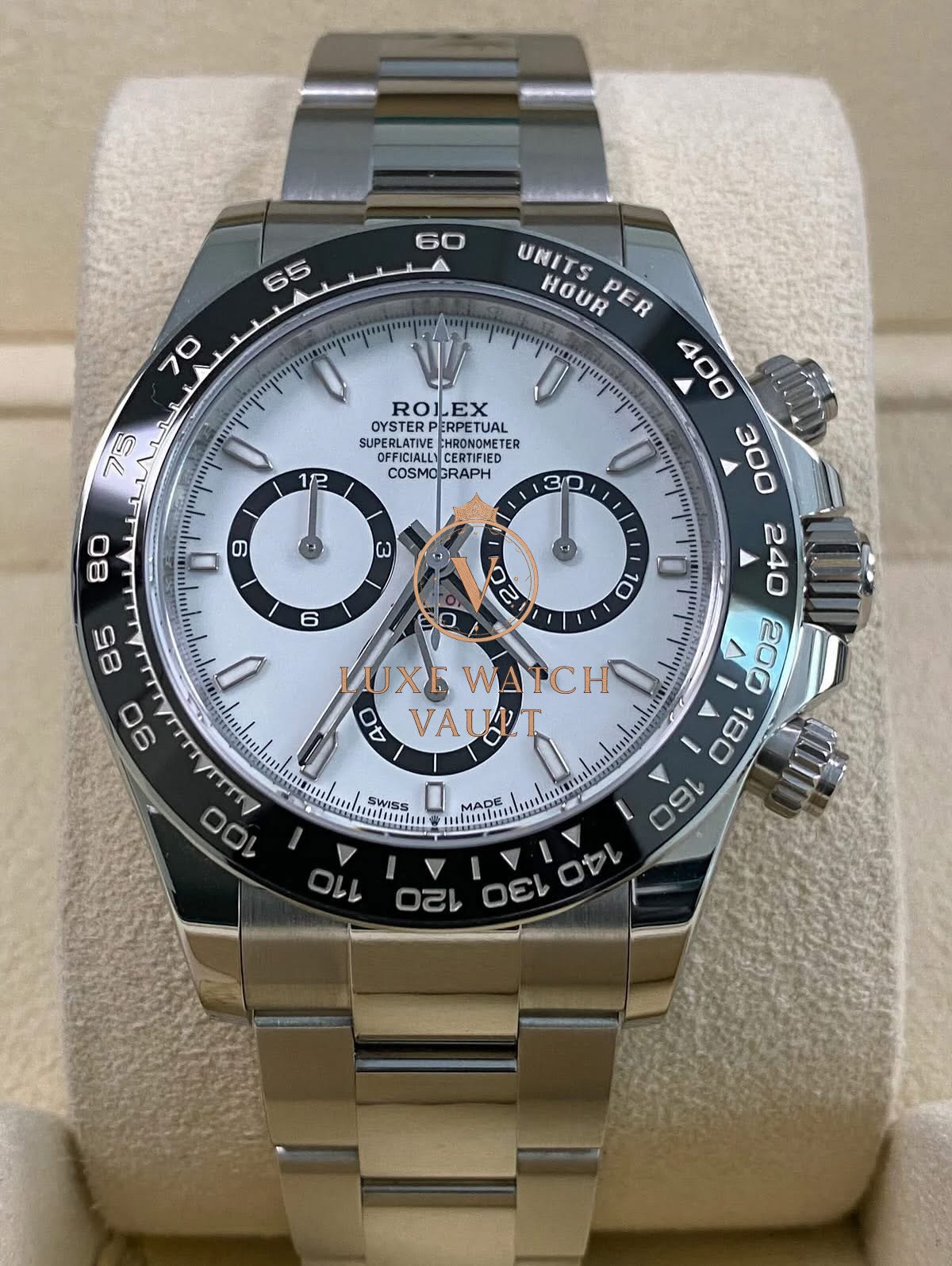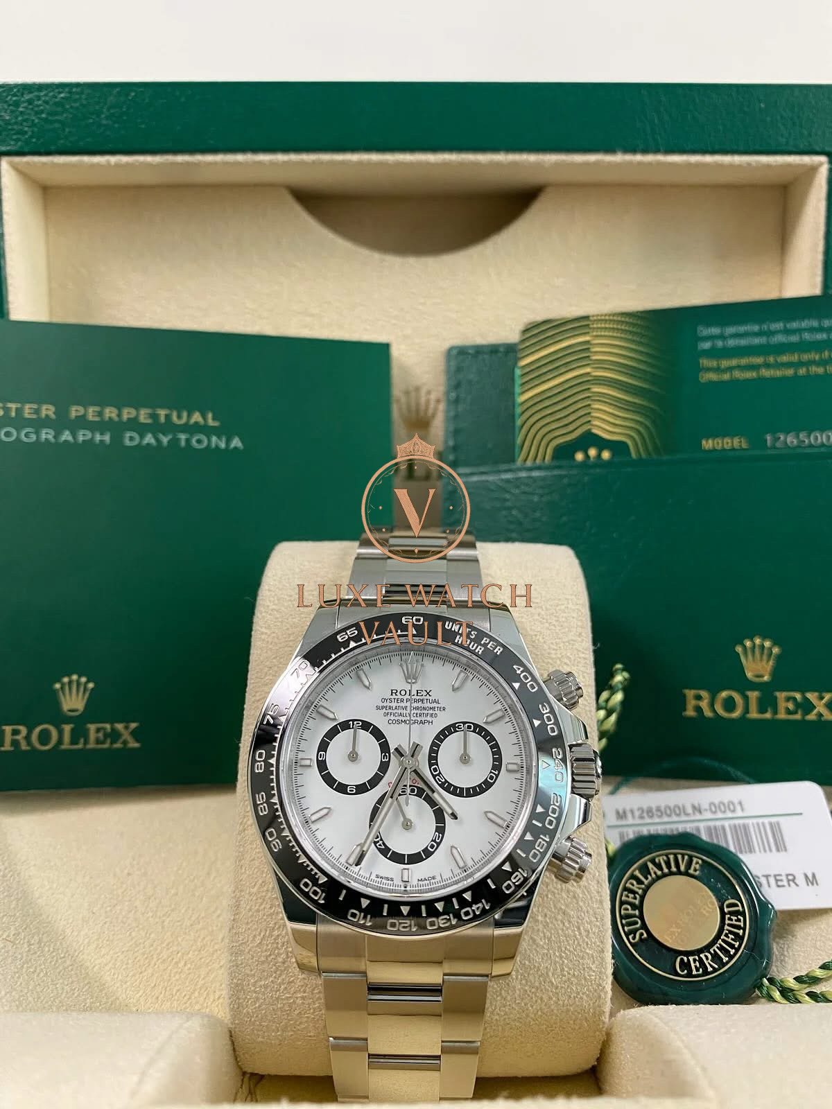 Rolex Steel Cosmograph Daytona – 2025 – “Panda” – 126500LN *FULL SET* $31,500🚢2025 Rolex Cosmograph Daytona “Panda” (126500LN), 40mm, stainless steel, white dial, black ceramic bezel, automatic movement, unworn, with original box, papers, and 5-year warranty.