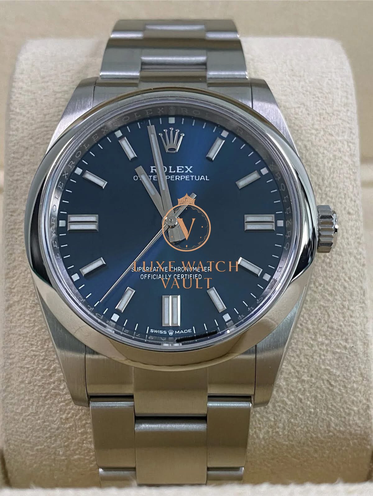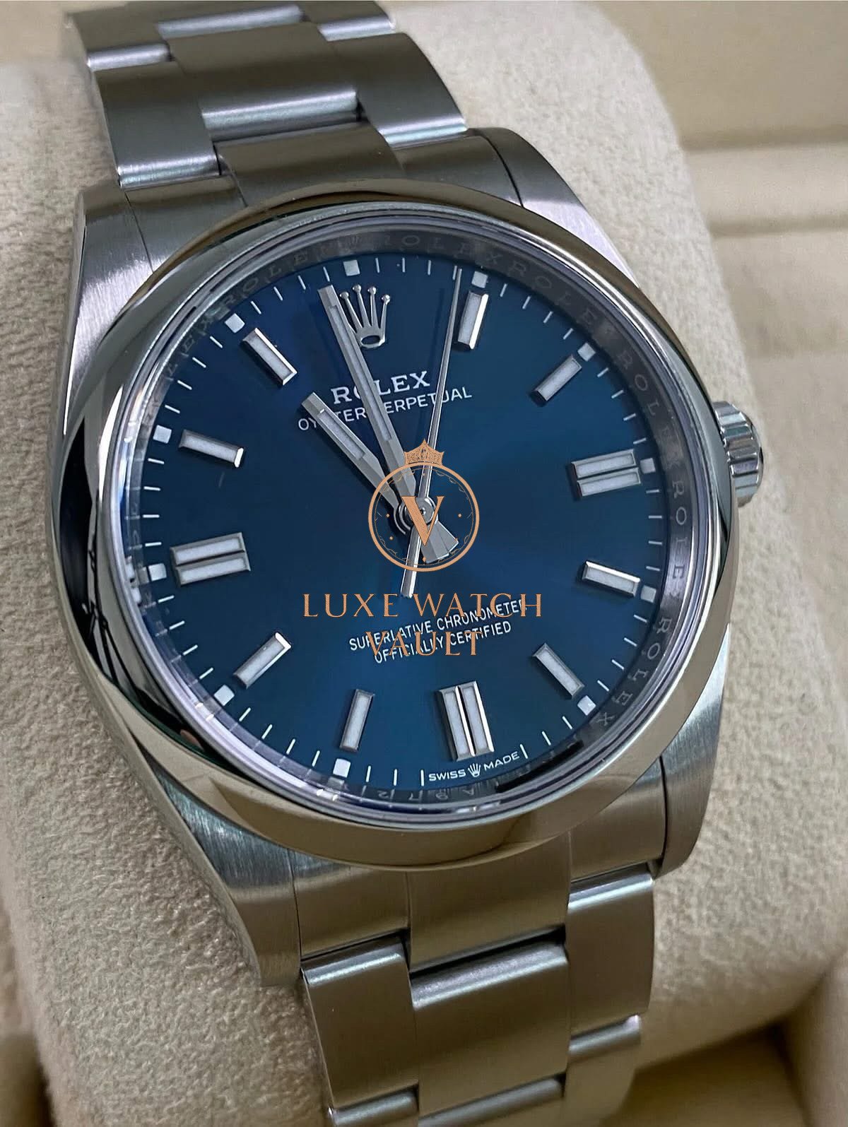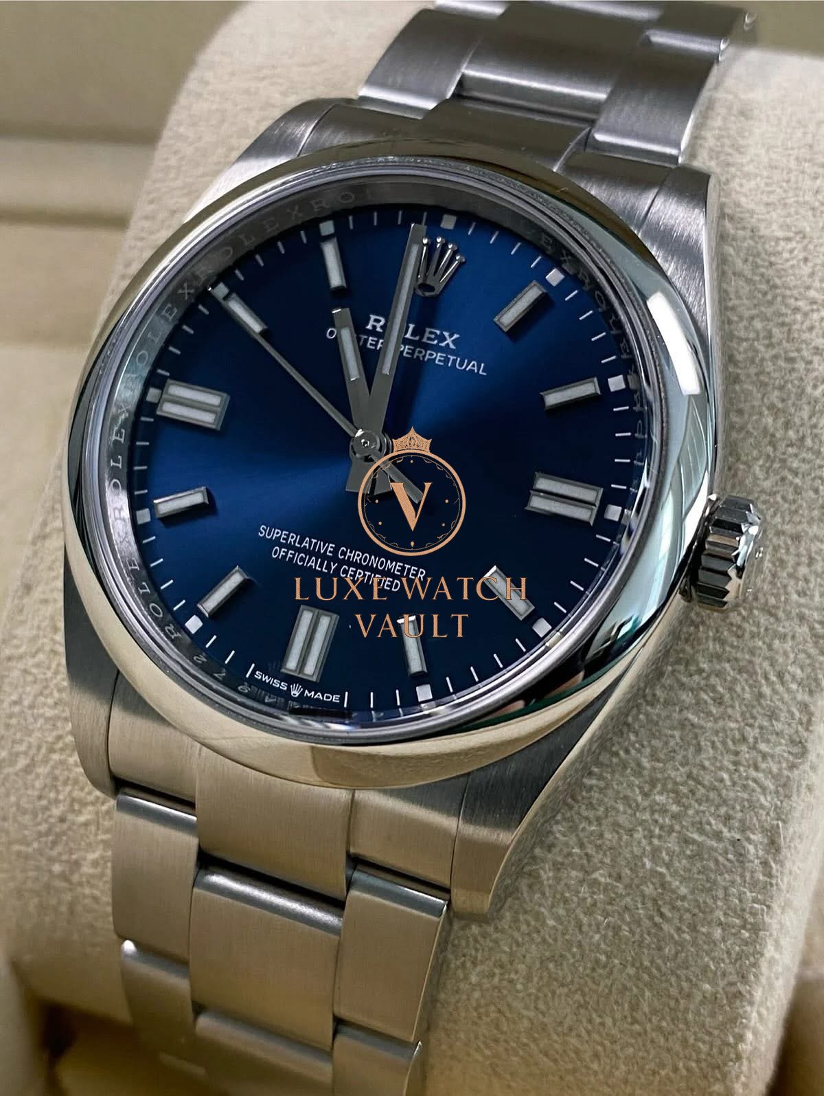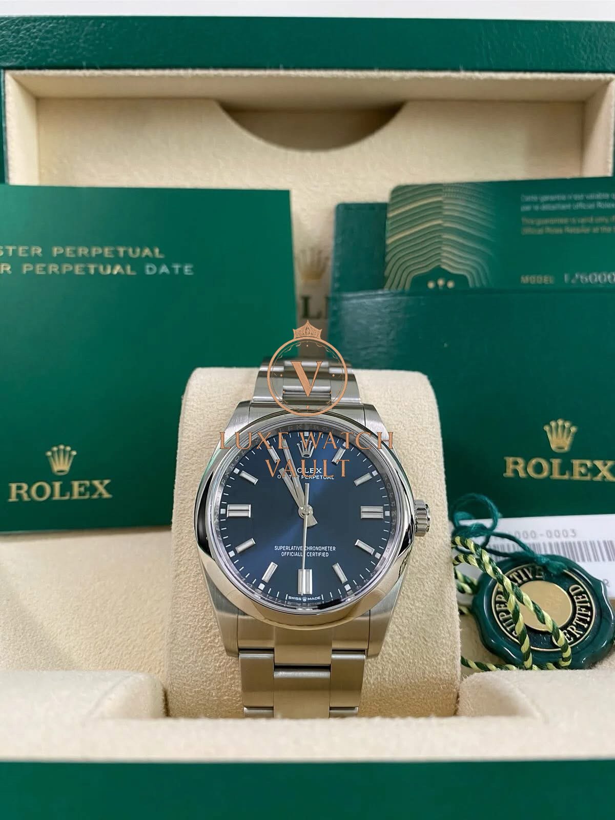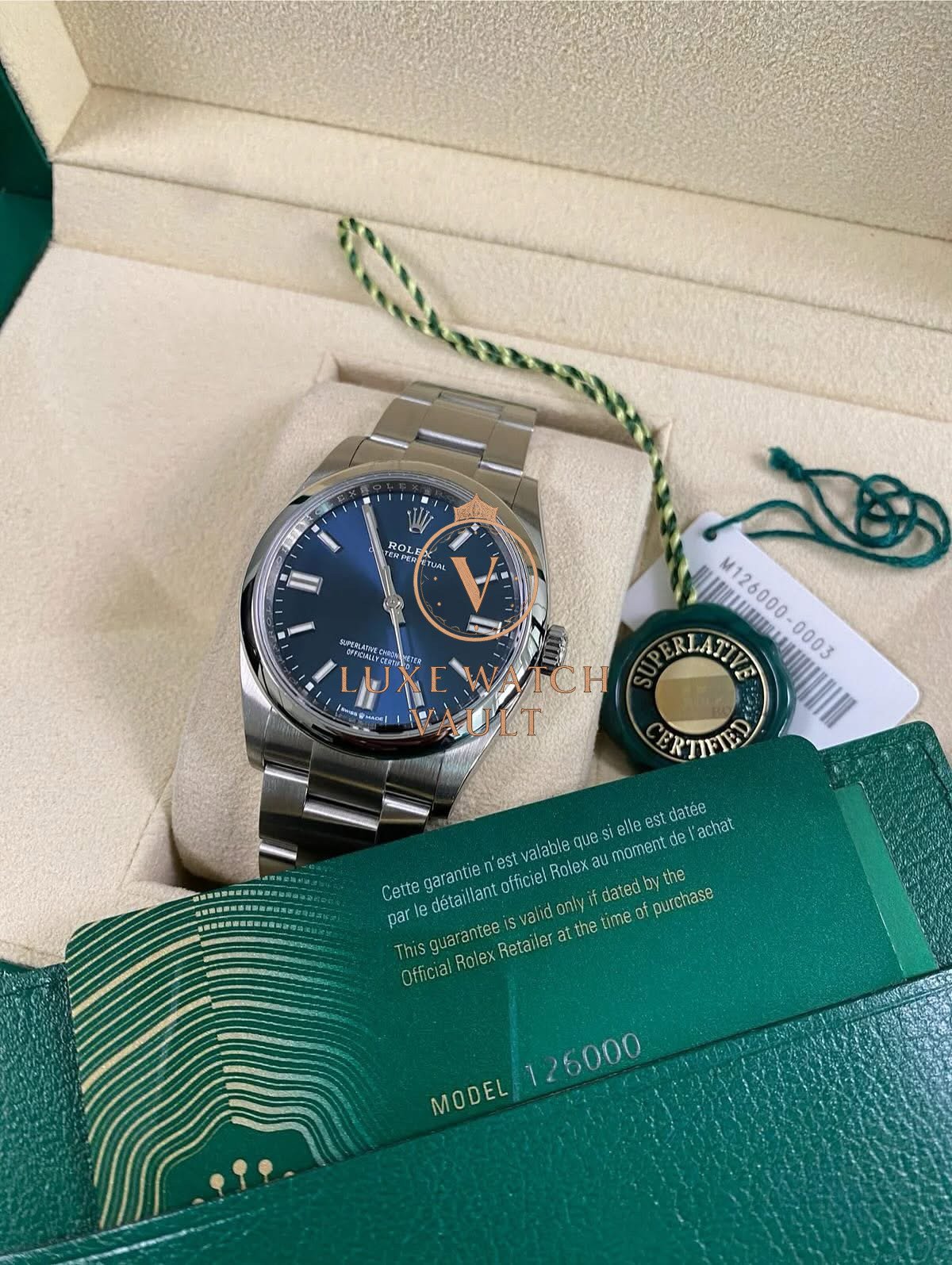 Rolex Steel Oyster Perpetual 36 – 2020 – Domed Bezel – Blue Dial – 126000 *FULL SET* $7,000🚢Pre-owned Rolex Oyster Perpetual 36, reference 126000, 36mm, stainless steel, blue dial, steel Oyster bracelet, automatic movement, 70h power reserve, with original box and papers, and 1-year warranty. Factory 5-year warranty valid until December 2025.