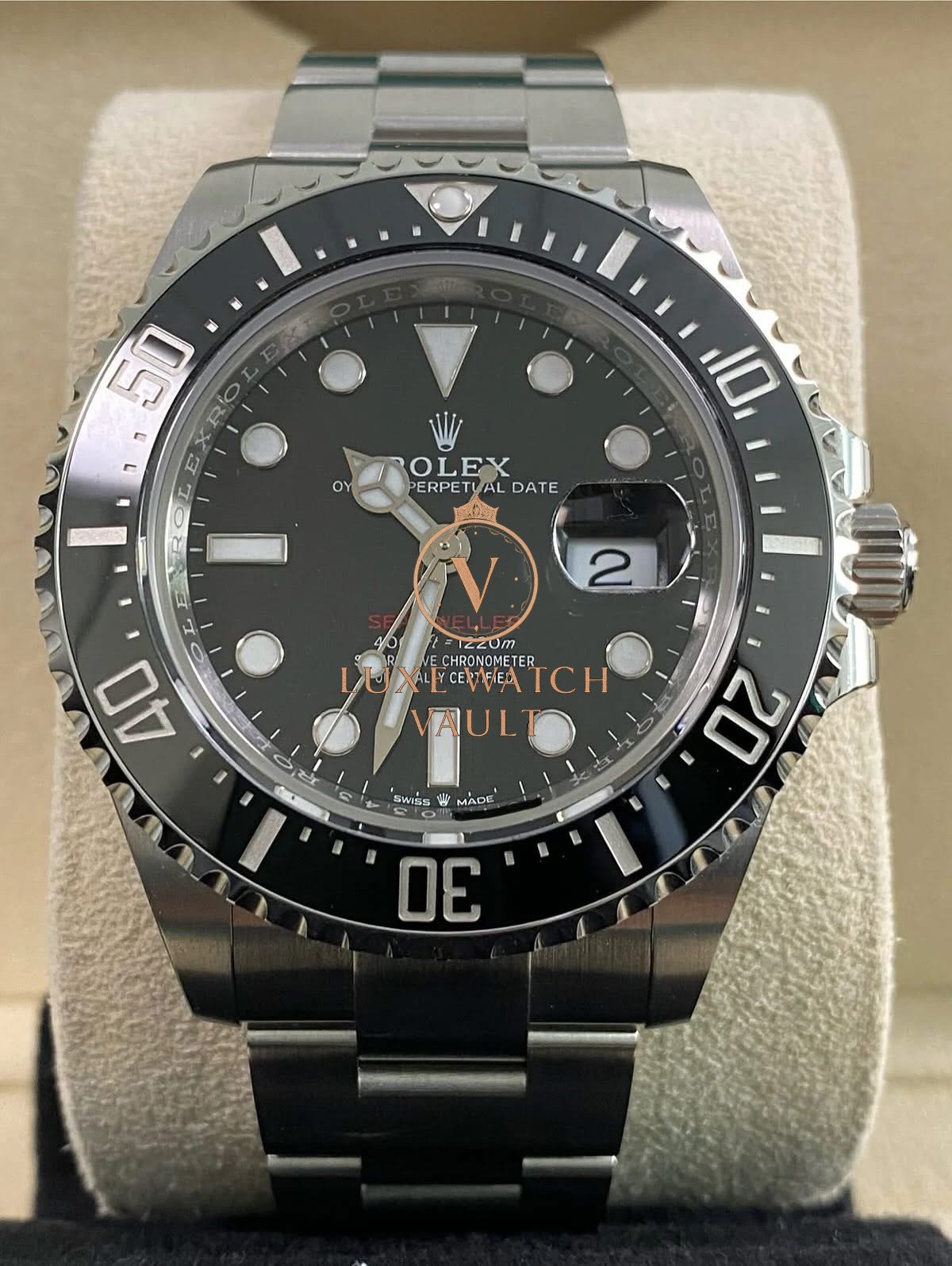 Rolex Steel Sea-Dweller 43mm – 2025 – Black Dial Red Letters- 126600 *FULL SET* $14,000 Rolex Sea Dweller 126600, 43mm, stainless steel, black dial and ceramic bezel, automatic movement, unworn with original box and papers, and 5-year factory warranty.