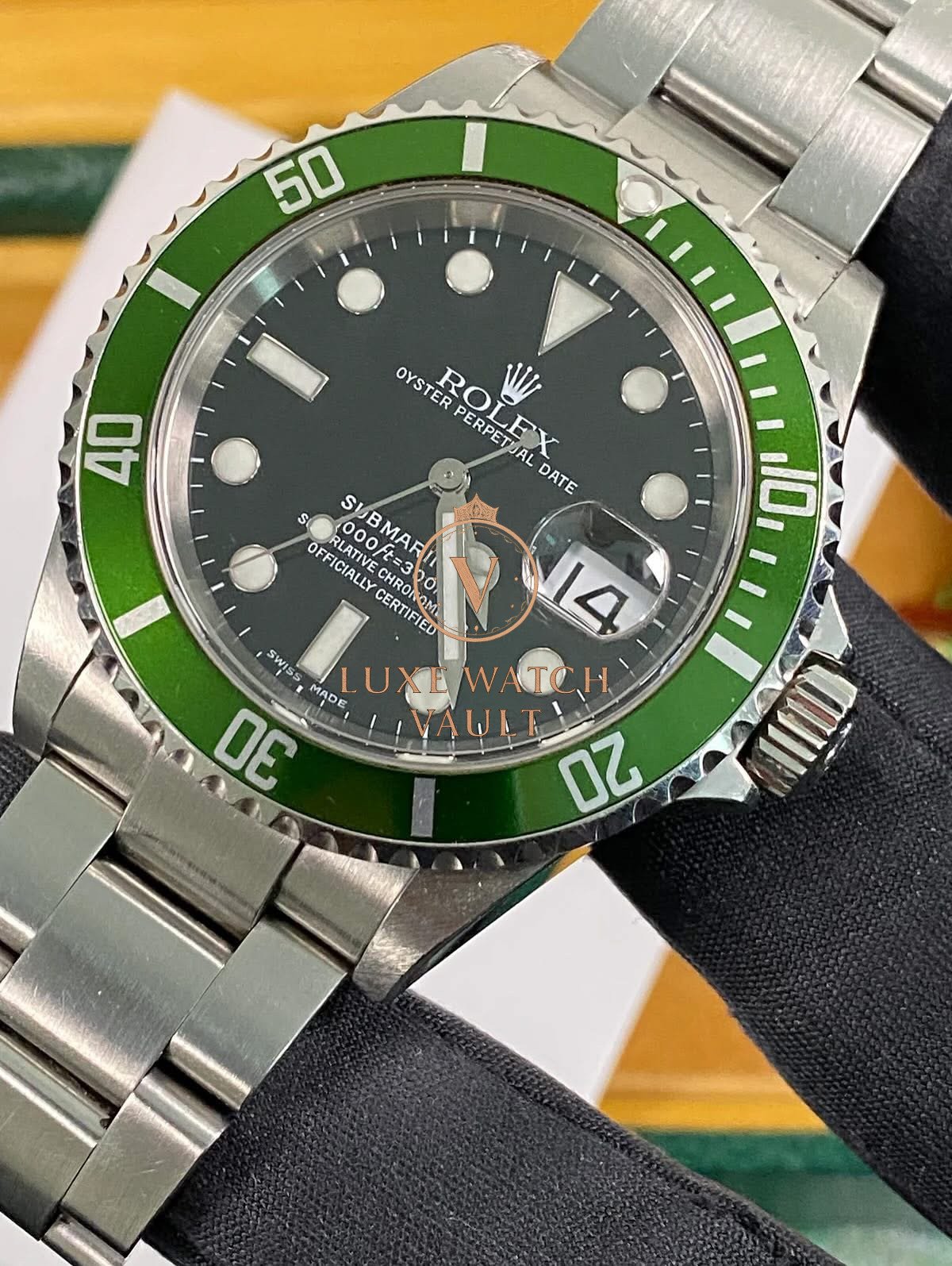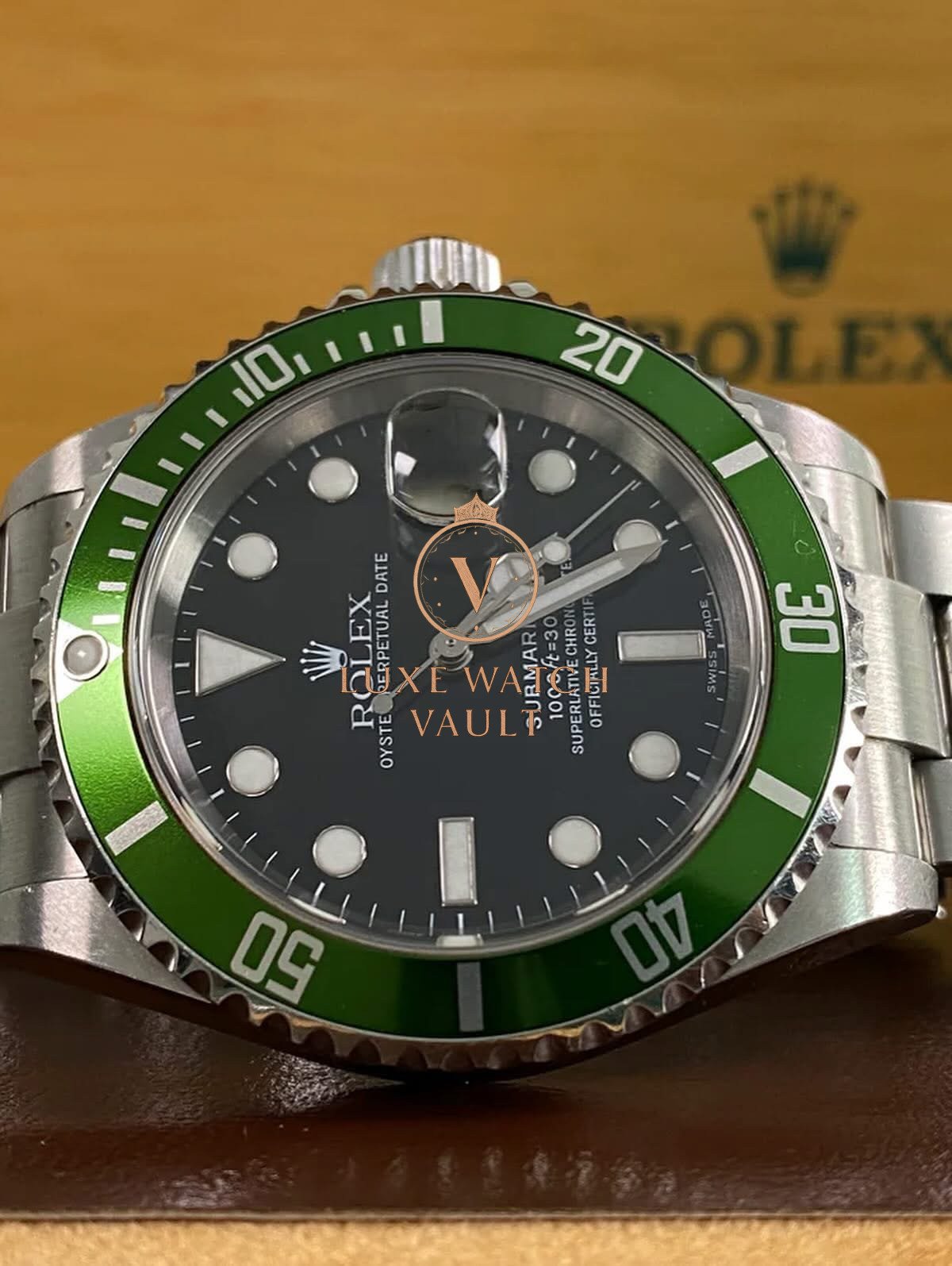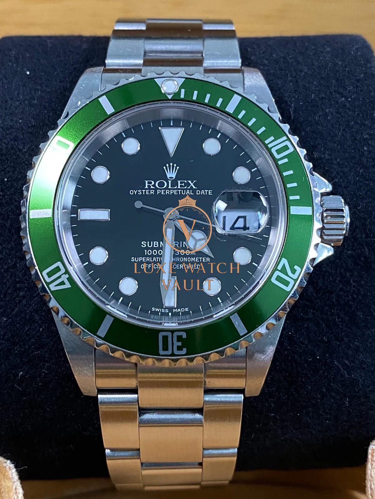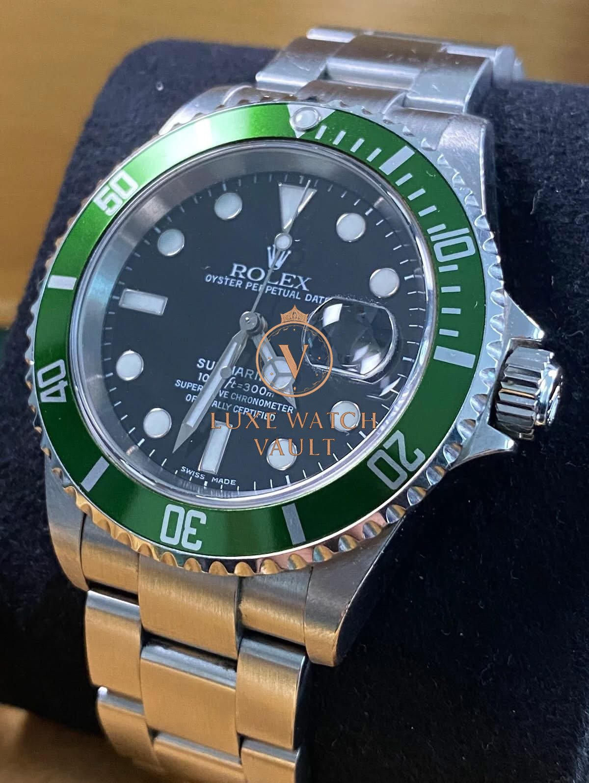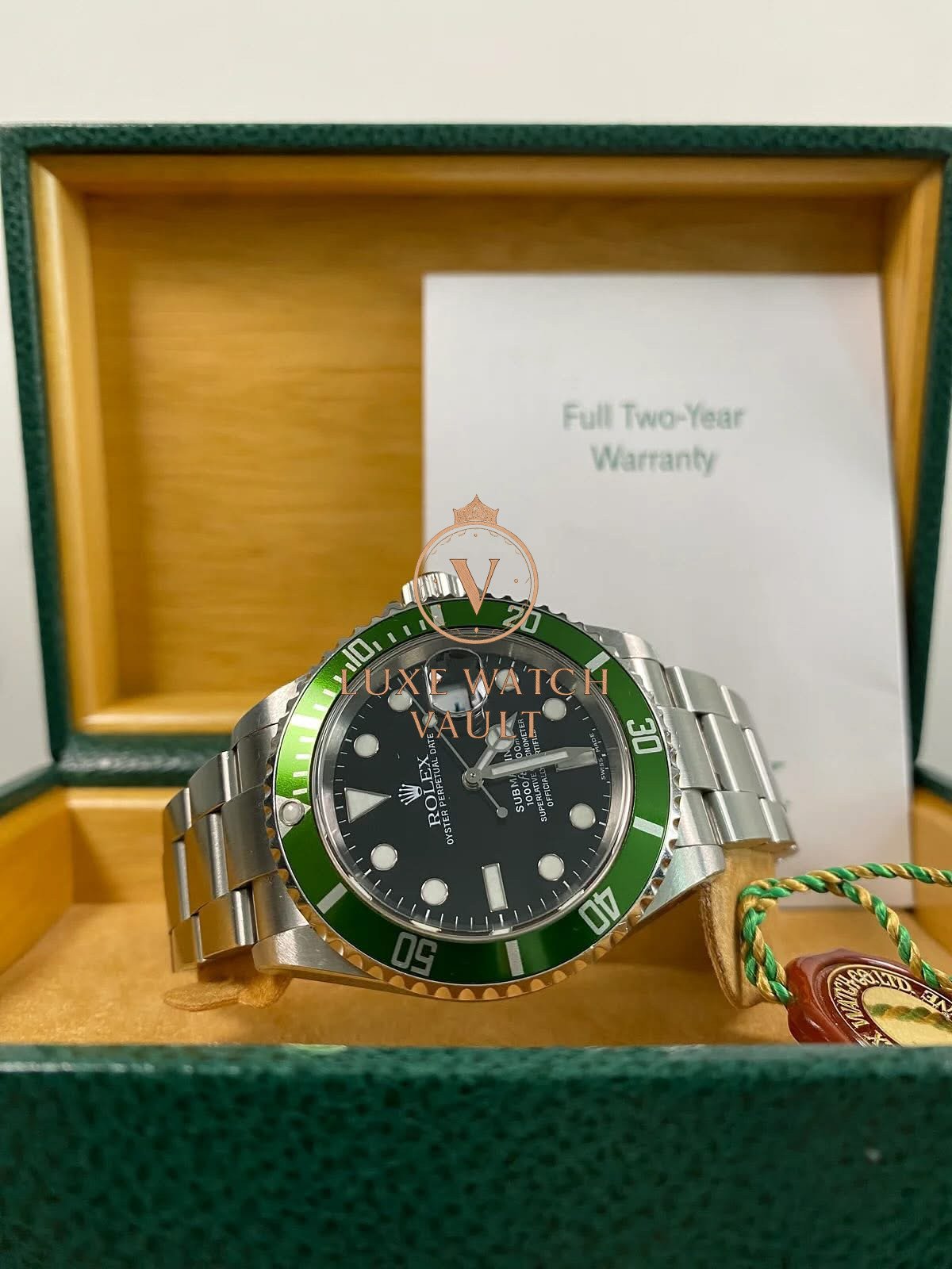 Rolex Steel Submariner Date – 2005 – “Kermit” – 16610LV *FULL SET* $12,500🚢Rolex Submariner Date “Kermit” 16610LV, 40mm, stainless steel, black dial, green bezel, automatic movement, 48h power reserve, with original box, papers, and 1-year warranty.