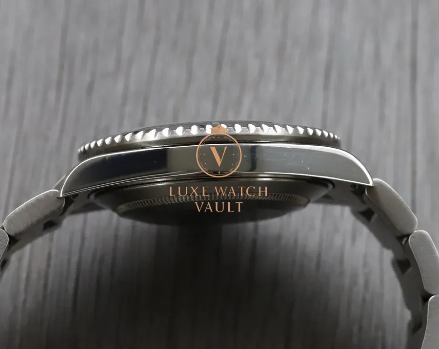 This particular example is an F-serial and dates from circa-2004 . Case is thick, and the lugs are even. Case shows some small signs of wear, with some light hairlines and rub marks on the polished surfaces, and a small rub mark on the upper right lug. Looks to have been some small dents that have been polished on the upper right flank. Bezel shows some small marks. Please see images for full condition details.
