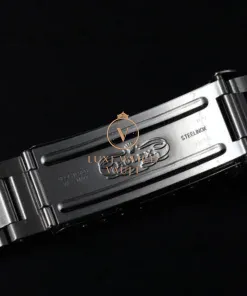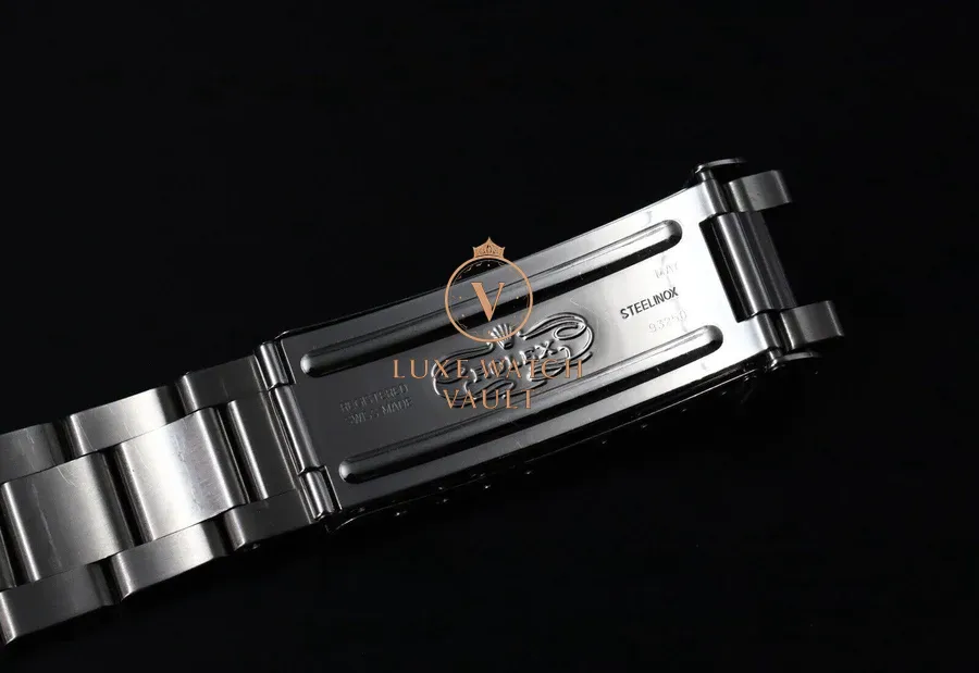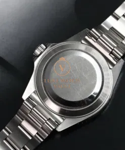 The bezel is in excellent condition with minor marks. Shows some light fade. Caseback shows service marking inside.