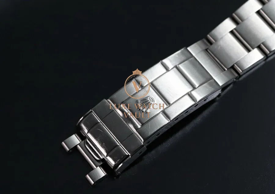 Bracelet contains 10 links and would suit a roughly 7.4in wrist. Shows minor stretch. Clasp code is MA7, so correct for a D serial.
