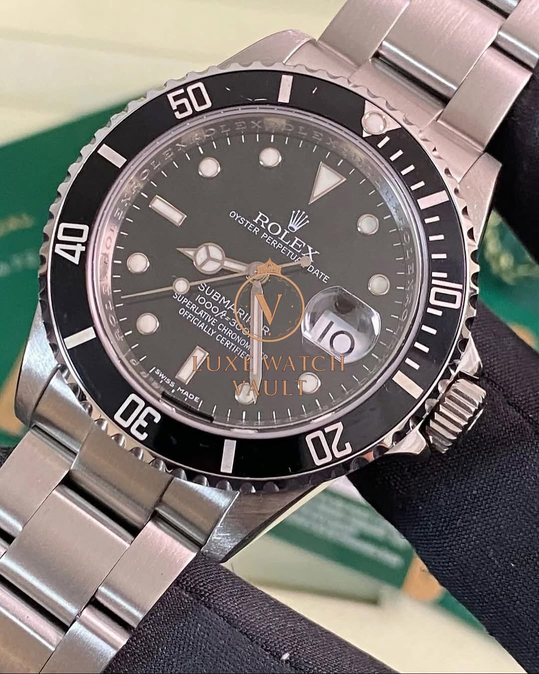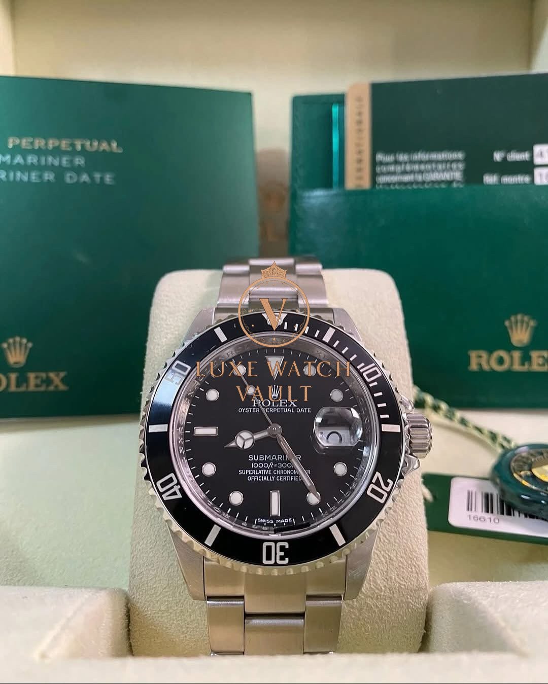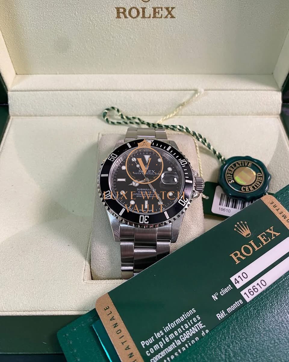 Rolex Steel Submariner Date – 2008 – Pre-Ceramic Bezel – Black Dial – 16610 *FULL SET* $8,000🚢Pre-owned Rolex Submariner Date 16610 in mint condition. Features a 40mm stainless steel case, black dial, and black pre-ceramic bezel. Includes original Rolex accessories, box, and papers, with a 1-year warranty.