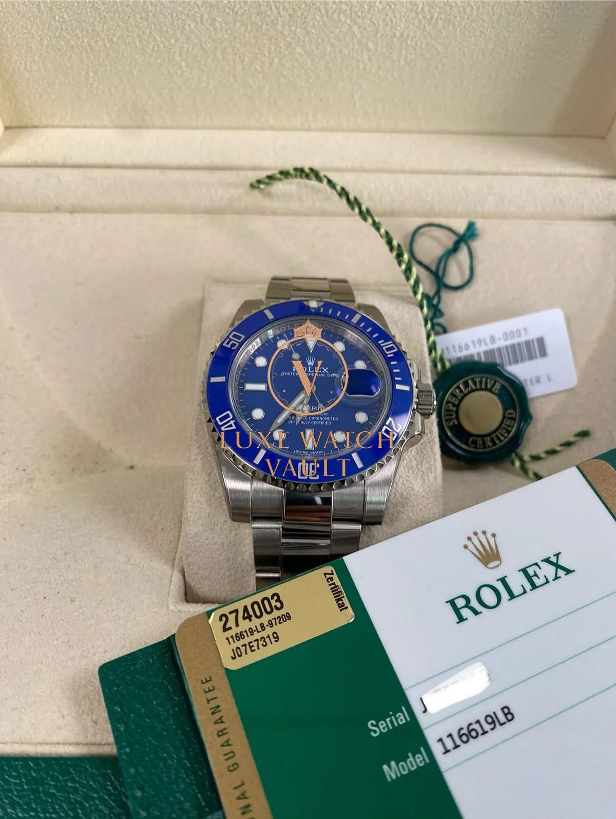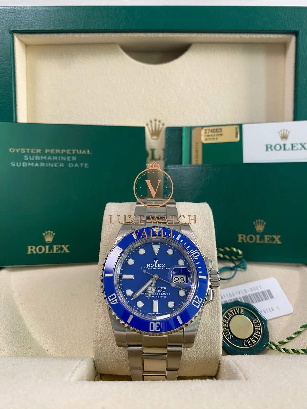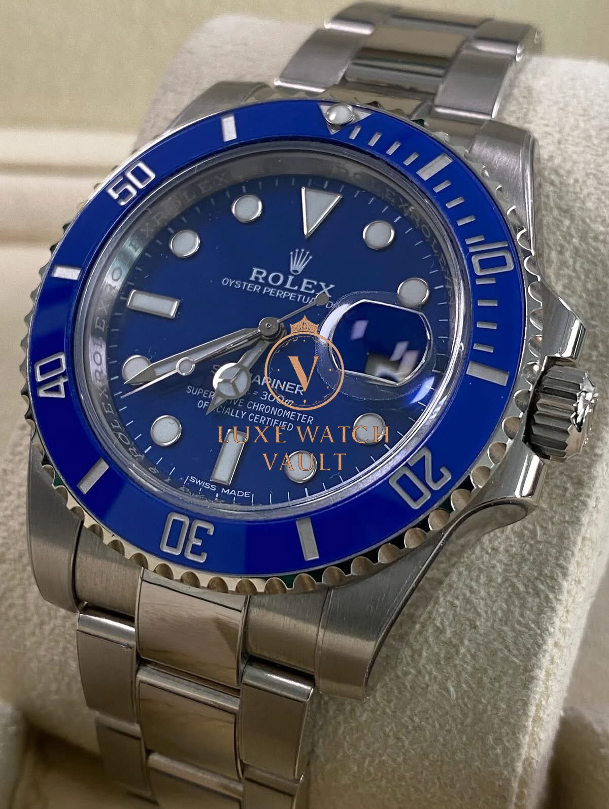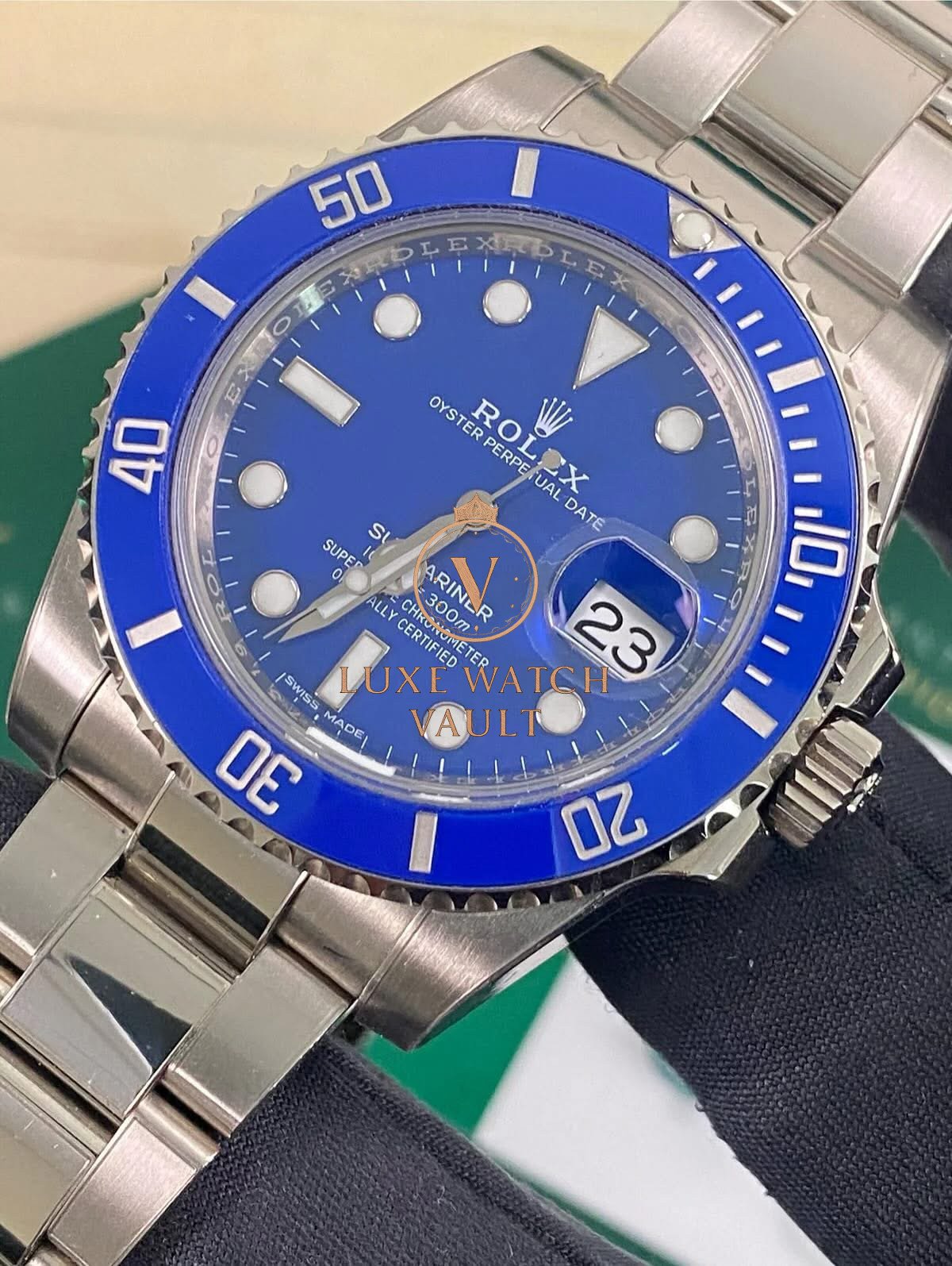 Rolex White Gold Submariner Date – 2016 – “Smurf” – 116619LB *FULL SET* $43,500🚢Pre-owned Rolex Submariner Date “Smurf” (Ref. 116619LB) in white gold with blue dial and ceramic bezel. Originally purchased in 2016, this watch comes with all original Rolex accessories and a 1-year warranty.